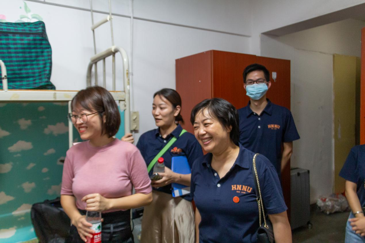 学院高度重视新生的迎新工作,院长谢炳庚、党委副书记陈媛先后前往学院迎新报到点检查指导工作,了解迎新的各项准备工作和进展情况,慰问迎新工作人员,与新生和家长亲切交流,鼓励新生尽快转变角色,适应大学生活,努力成长成才。新生报到结束当晚,学院领导带领学工办辅导员及各专业班导师一起下寝看望新生。