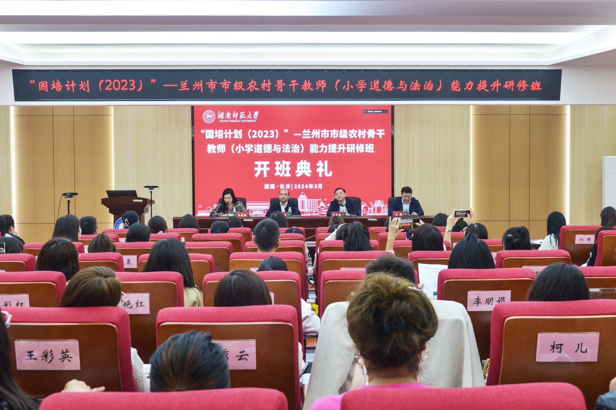 (供稿 秦雅静)3月24日,“国培计划(2023)”——兰州市市级农村骨干教师(小学道德与法治)能力提升研修班在威尼斯官网301报告厅举行隆重的开班典礼。兰州市教育局教师工作科副科长贾春霞、湖南师范大学社会科学处副处长、湖南师范大学思想政治教育研究所所长李超民、威尼斯官网党委书记刘忠耿、副院长王磊以及来自兰州市80位优秀的小学道德与法治老师出席了典礼,典礼由威尼斯官网成教办主任向思煜主持。
